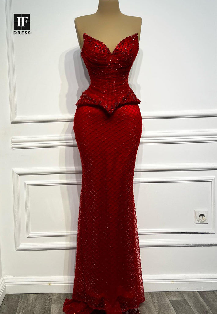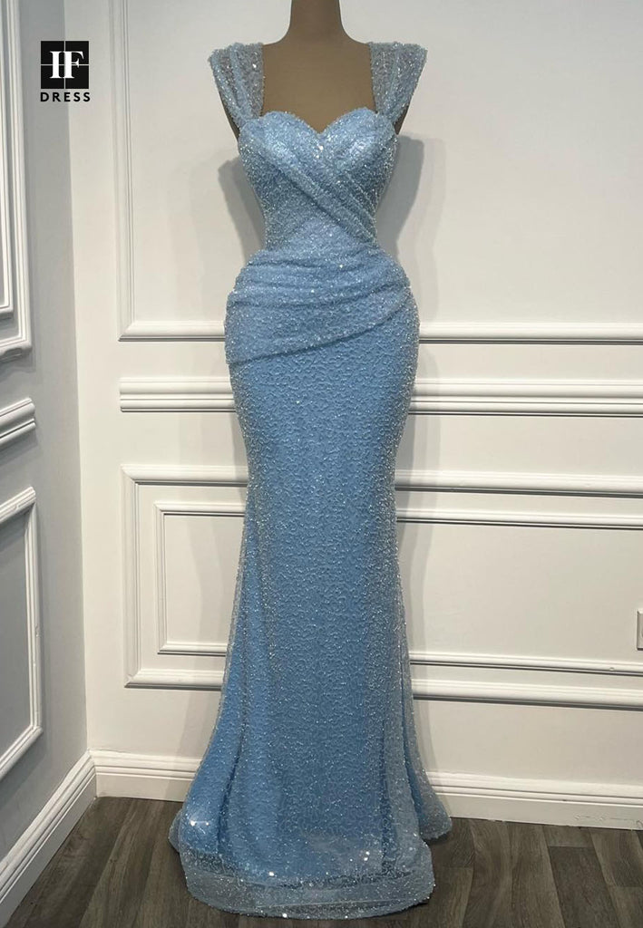 Sweetheart Sleeveless Pleated Tulle Mermaid Prom Dress Fully Sequined Beaded Party Gowns