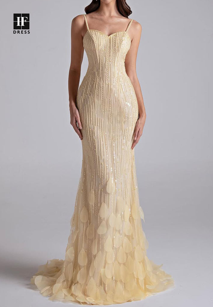Sweetheart Spaghetti Straps Sleeveless Fully Sequined Beaded Sweep Train Mermaid Prom Dress