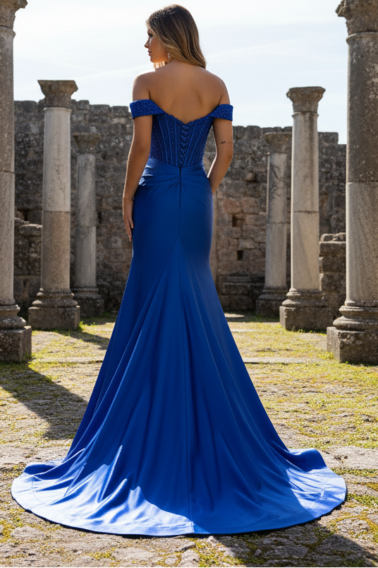 34055 - Off the Shoulder Lace Appliques High Split Long Prom Dress - Royal Blue is backordered and will ship as soon as it is back in stock.