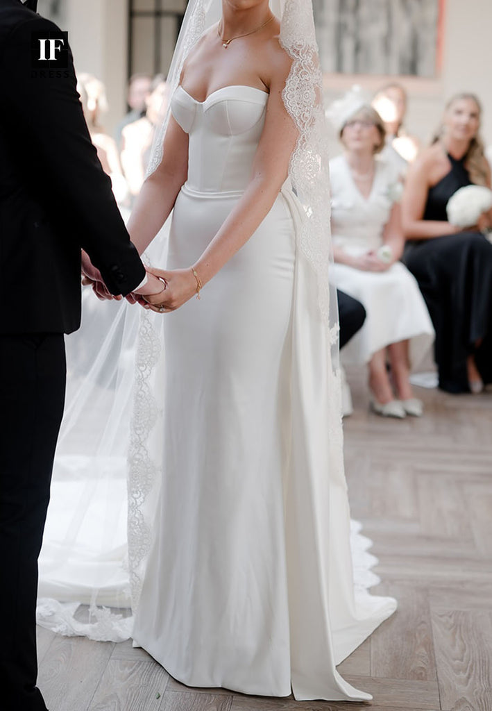 Tube Top Sleeveless Mermaid Wedding Dress Off-Shoulder Satin Bride Gowns with Sweep Train