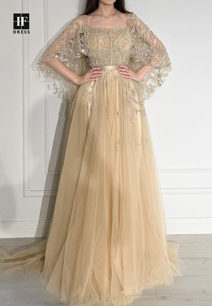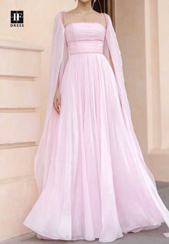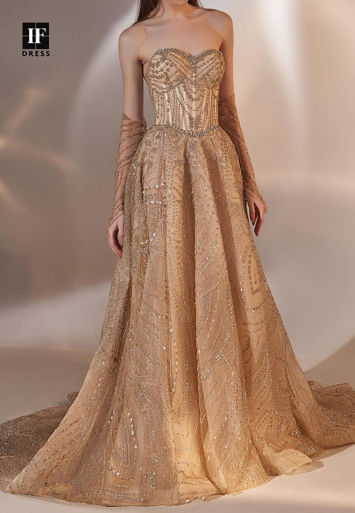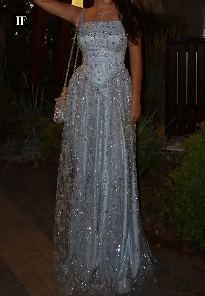 Square-Neck Off-Shoulder Sleeveless Fully Sequined Pleated Mermaid Prom Dress with High Slit