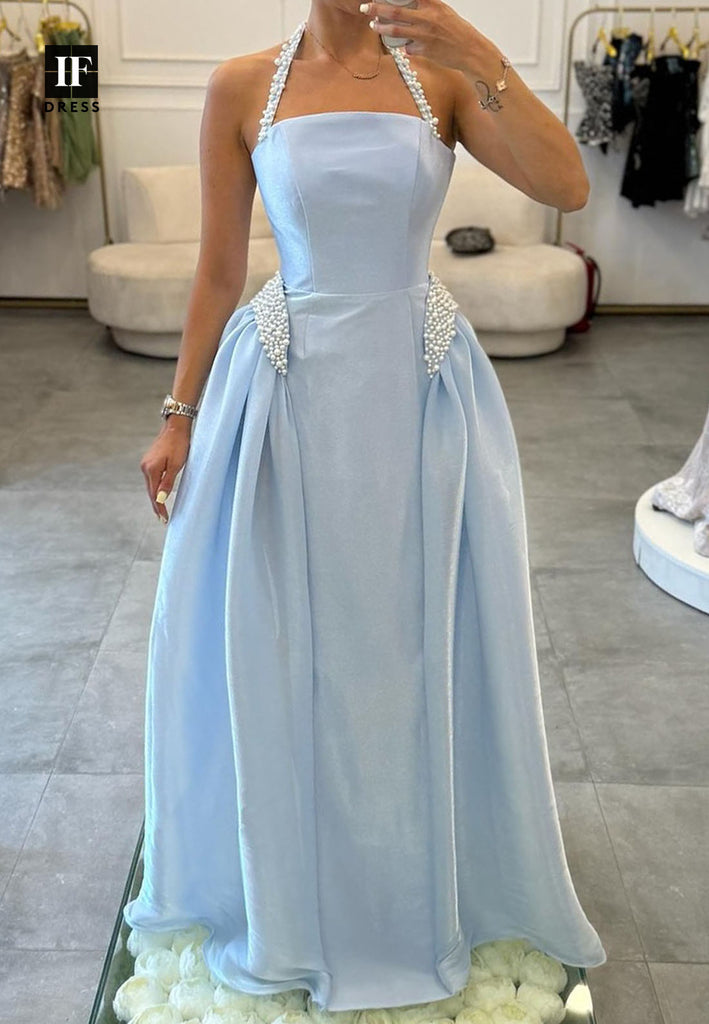 Off-Shoulder Sweetheart Sleeveless Party Gowns Beaded Satin Slit Mermaid Prom Dress with Bow