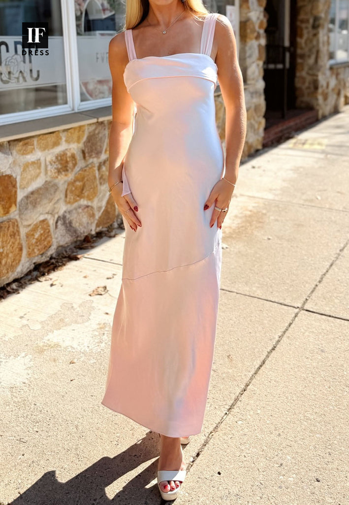Scoop-Neck Spaghetti Straps Mermaid Prom Dress Sleeveless Floor-Length Satin Party Gowns