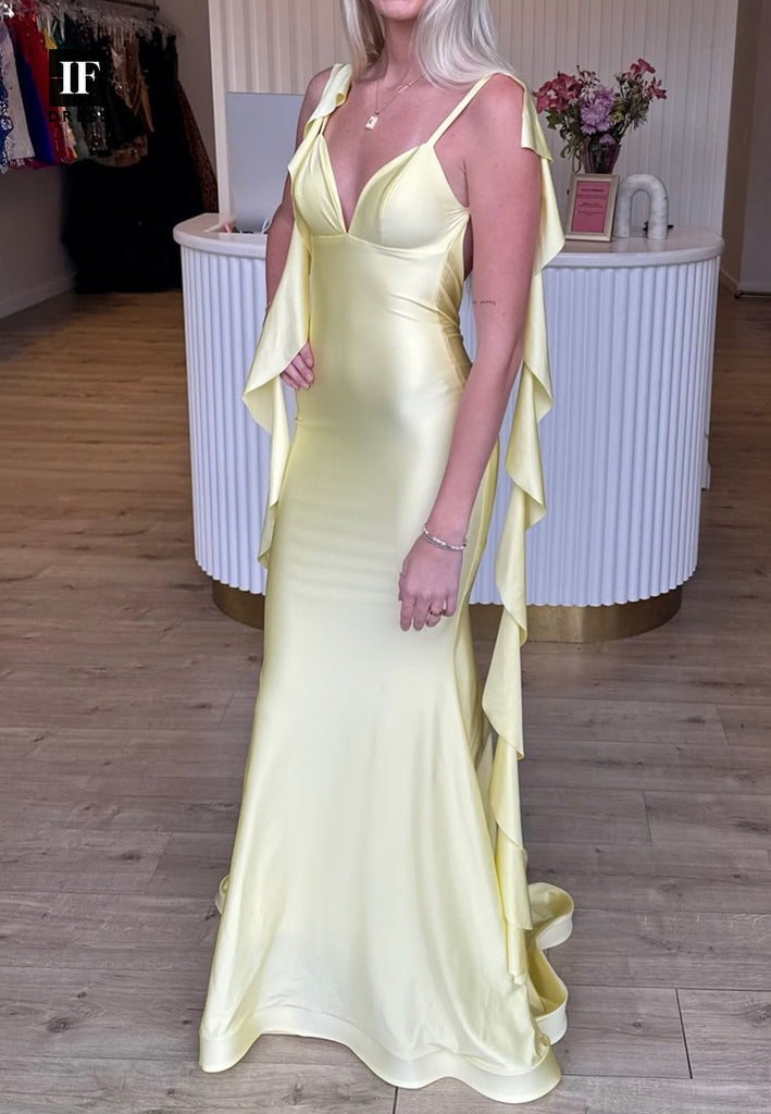 Deep V-Neck Spaghetti Straps Sleeveless Party Gowns Satin Floor-Length Mermaid Prom Dress