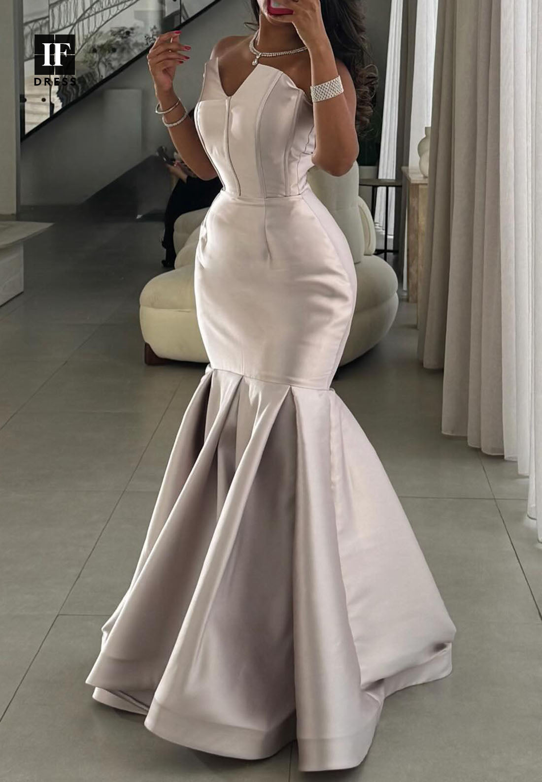 Tube Top V-Neck Pleated Satin Mermaid Evening Dress Off-Shoulder Sleeveless Trumpet Formal Gowns