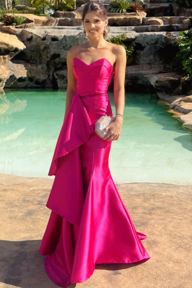 Sweetheart Sleeveless Floor-Length Satin Pleated Tiered Mermaid Formal Prom Dress