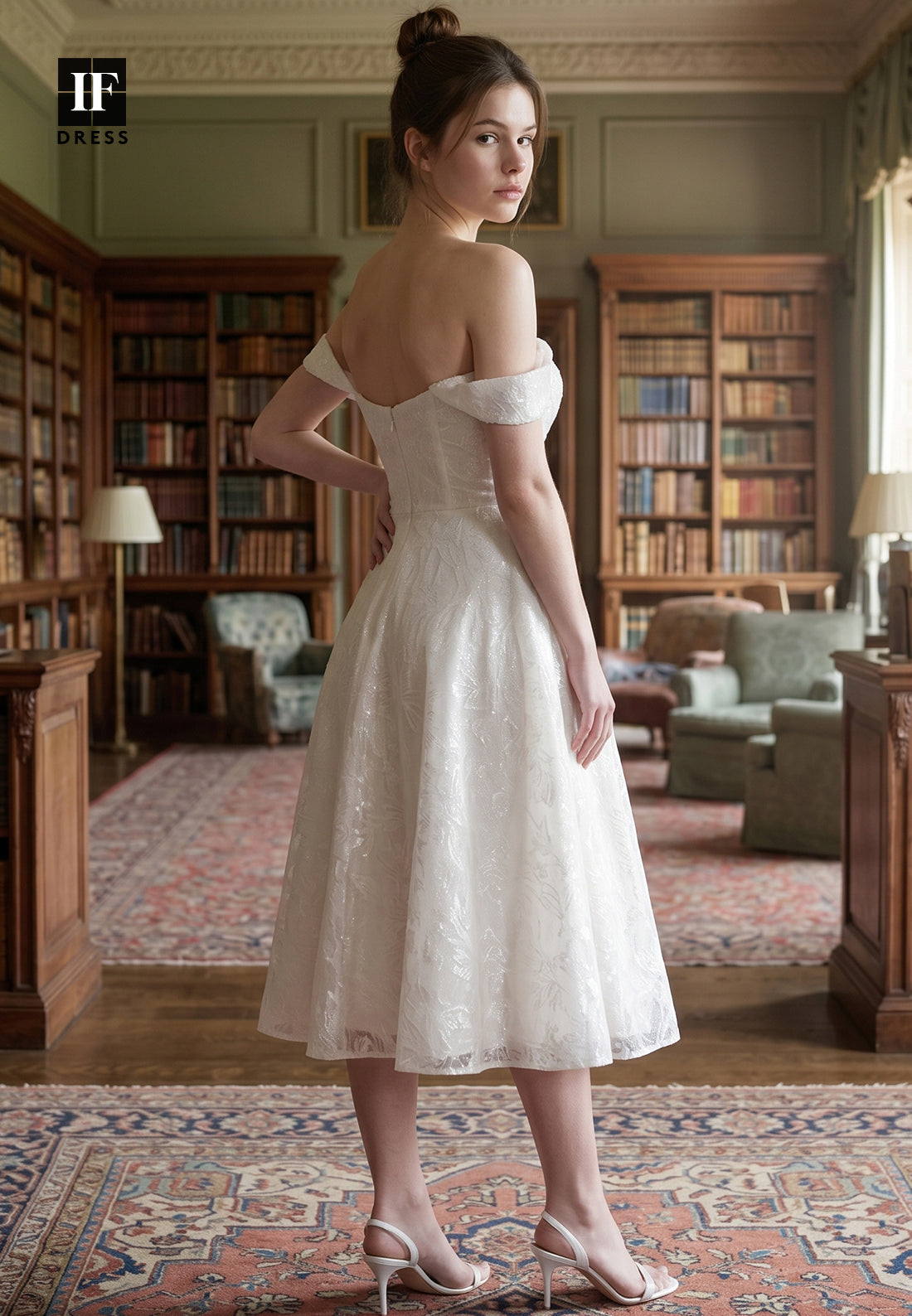 Radiant and romantic, this beach wedding dress captures effortless elegance with its tube top silhouette and sleeveless design. Fully sequined with delicate appliqué details, the shimmering bodice transitions into soft tulle layers adorned with graceful pleats. The flattering A-line cut flows to a charming tea-length hem, perfect for seaside ceremonies and casual celebrations. Lightweight and breathable, this dress moves beautifully in ocean breezes while maintaining its sophisticated sparkle. Ideal for destination weddings, vow renewals, or any bride seeking a blend of glamour and relaxed coastal charm.
