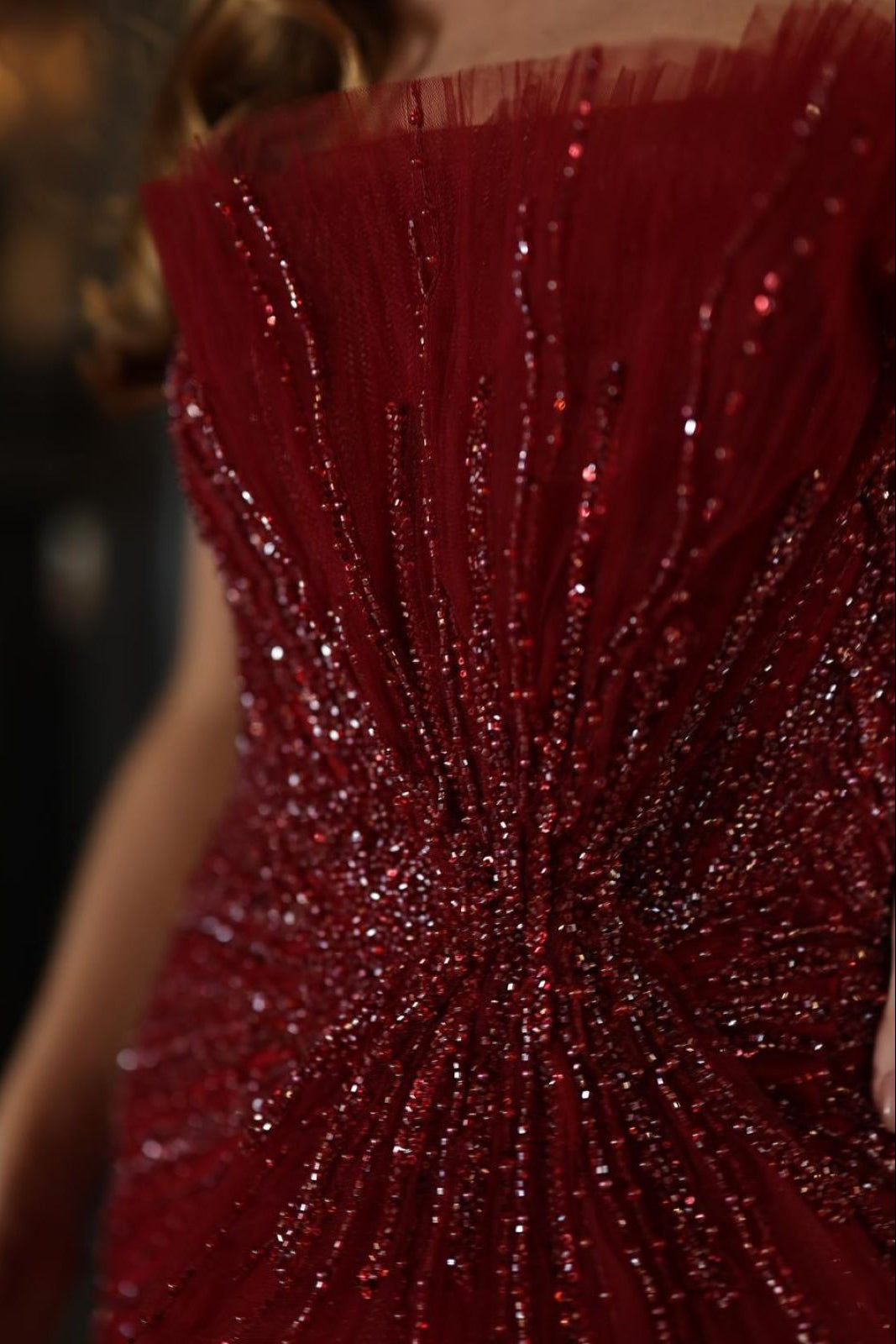 Elevate your prom night with this stunning asymmetrical-neck gown that commands attention. Crafted from luxurious tulle and adorned with full sequin and bead embellishments, every angle sparkles with sophistication. The expertly pleated bodice creates a flattering silhouette, while the dramatic high slit adds modern elegance and movement. The A-line skirt provides graceful volume and timeless appeal. Perfect for those seeking a show-stopping statement piece that balances glamour with refined design.