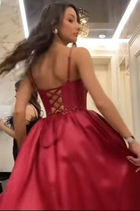 Elevate your prom night with this stunning A-line gown featuring a sweetheart neckline and delicate spaghetti straps. Crafted from luxurious satin, the bodice showcases intricate beading and sequin detailing that catches light beautifully throughout the evening. The pleated skirt flows gracefully to the floor, creating an elegant silhouette that flatters every figure. Perfect for making a memorable entrance at any formal event, this dress combines timeless sophistication with contemporary glamour.
