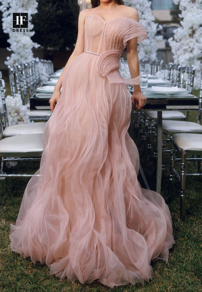 Sweetheart Off-Shoulde A-Line Evening Dress Sequined Beaded Pleated Tulle Bridesmaid Gowns