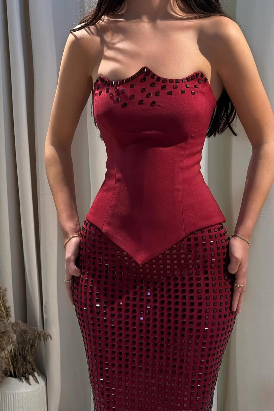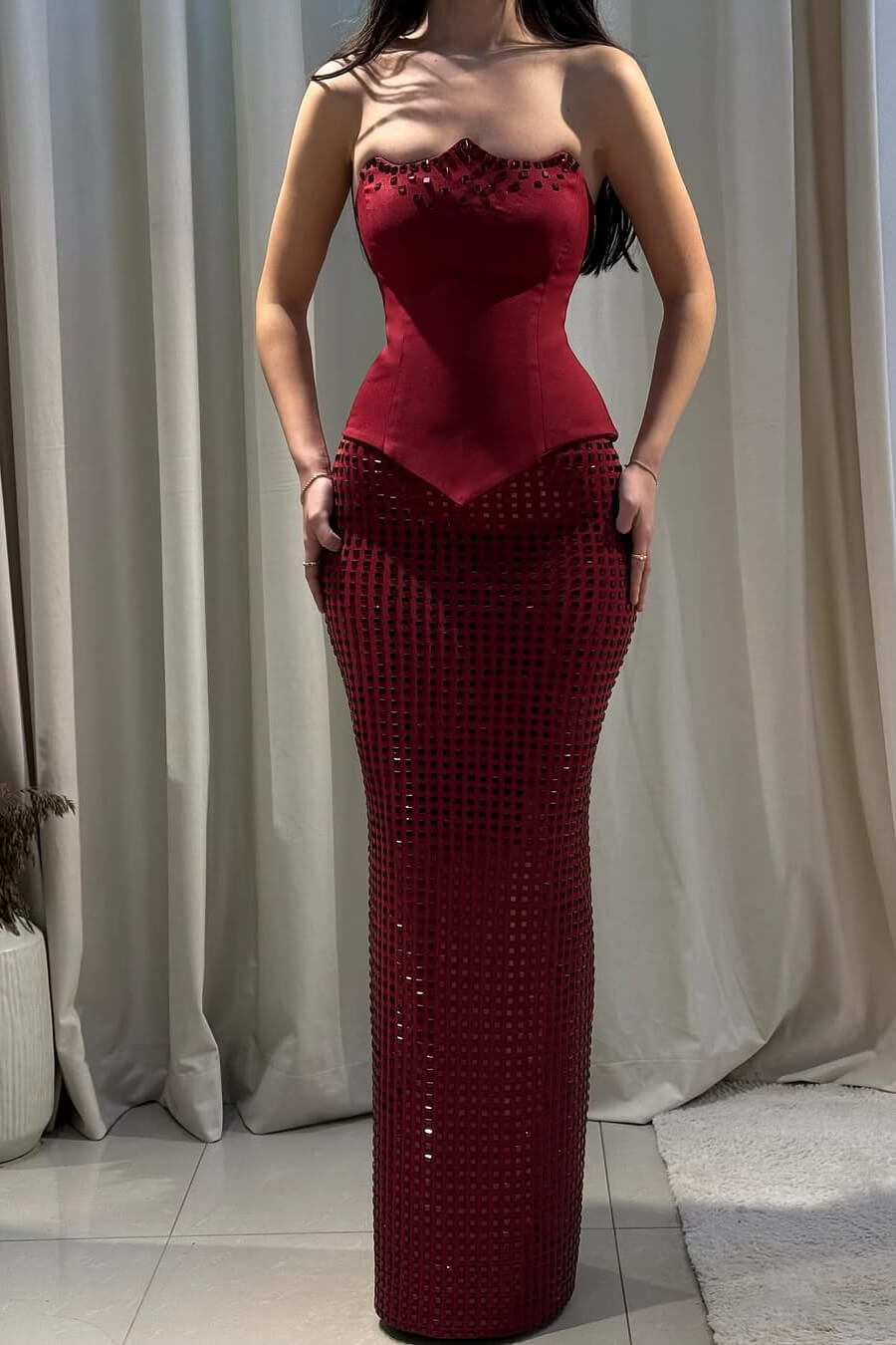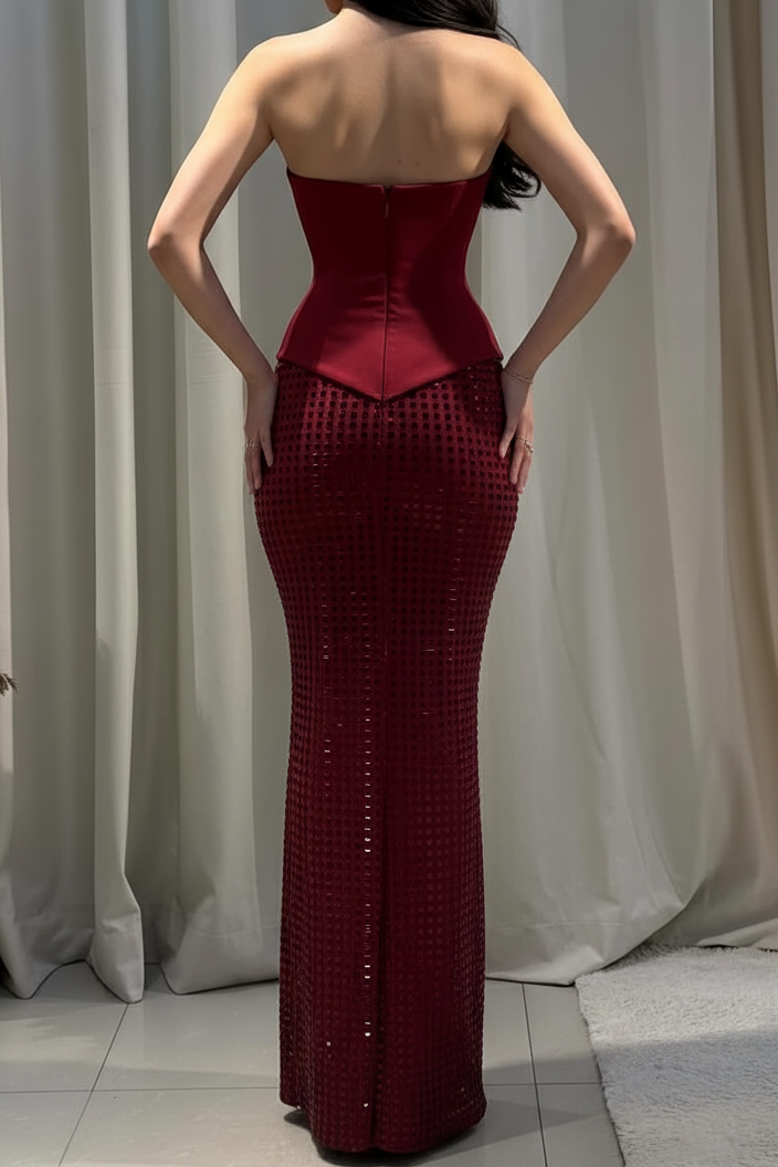 Make a stunning entrance in this sophisticated mermaid prom dress. The elegant tube top with off-shoulder design creates a flattering silhouette, while delicate rhinestone embellishments catch the light with every movement. Crafted from luxurious satin and tulle, the floor-length skirt flows gracefully with a dramatic mermaid hem that commands attention. Perfect for prom, formal events, or special occasions where you want to feel confident and radiant. This sleeveless design offers timeless elegance with modern flair.