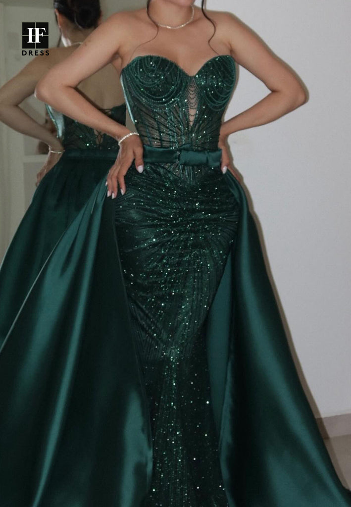 Sweetheart Sequined Beaded Mermaid Prom Dress Pleated Satin Trumpet Evening Gowns