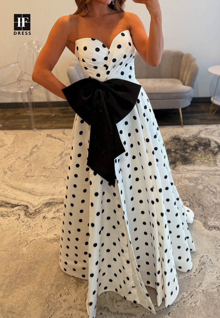 Sweetheart Sleeveless A-Line Prom Dress Off-Shoulder Polka Dot Floor-Length Party Gowns