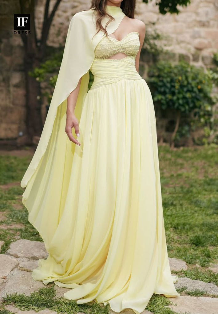 A-Line Off-Shoulder Sleeveless Beaded Formal Gowns Sweetheart Pleated Chiffon Evening Dress