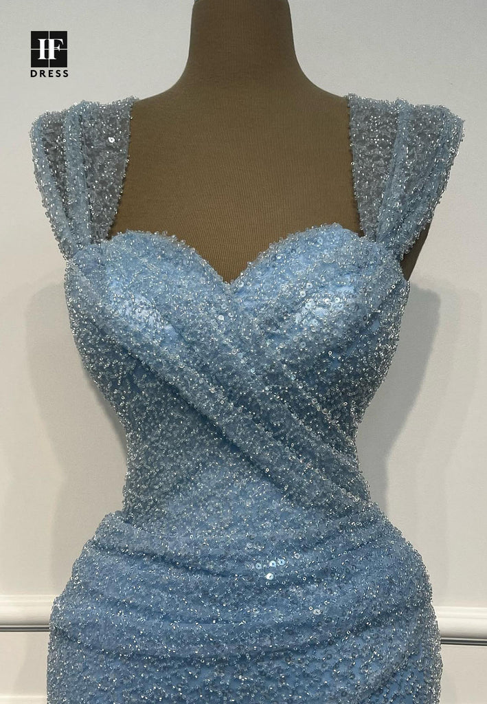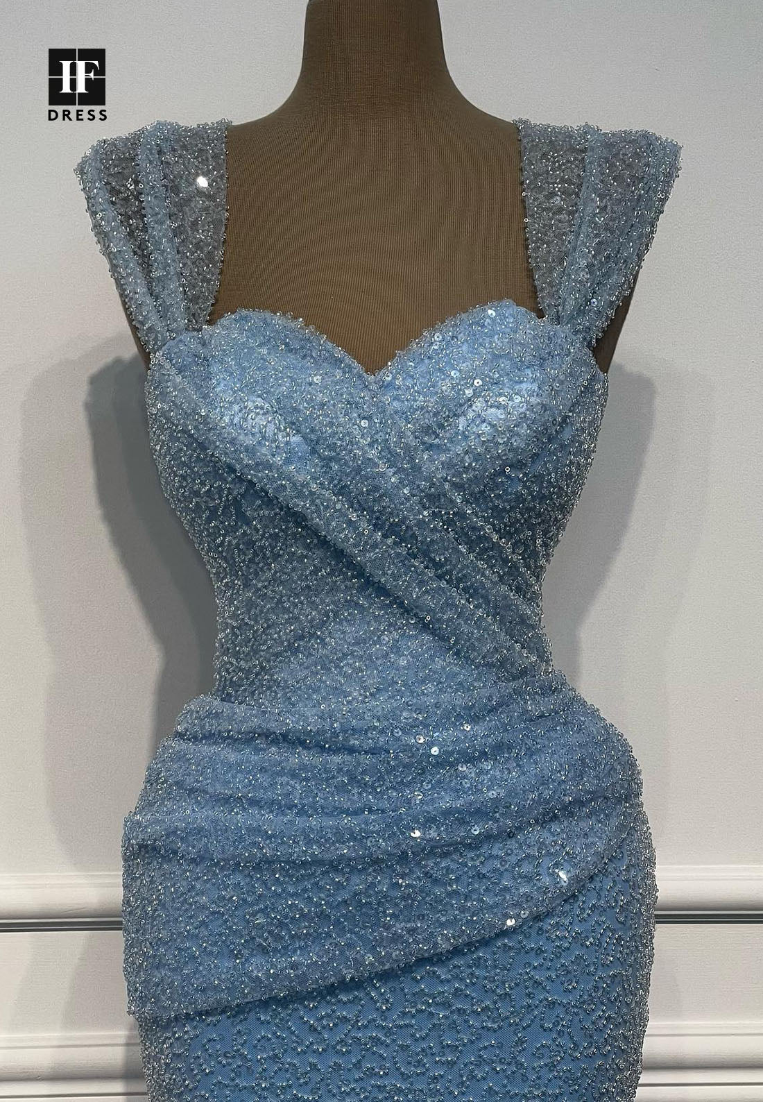 Sweetheart Sleeveless Pleated Tulle Mermaid Prom Dress Fully Sequined Beaded Party Gowns - Sky Blue está en espera y se enviará tan pronto como vuelva a estar en stock