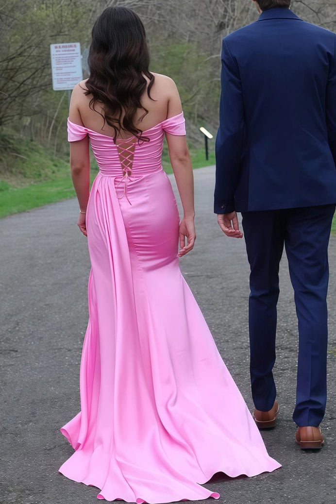 Sweetheart Off-Shoulder Beaded Floor-Length Satin Pleated Mermaid Prom Dress with Slit - Pink est en rupture de stock et sera envoyé dès qu'il sera disponible
