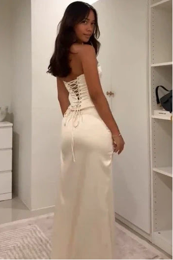 Elevate your prom night with this sophisticated mermaid silhouette crafted from luxurious satin. The sweetheart neckline and sleeveless design create an elegant, timeless look, while delicate pleating adds dimension and movement. The floor-length cut flows gracefully to the ground, culminating in a dramatic high slit that offers both style and ease of movement. Perfect for those seeking a classic yet bold statement piece that commands attention on the dance floor.