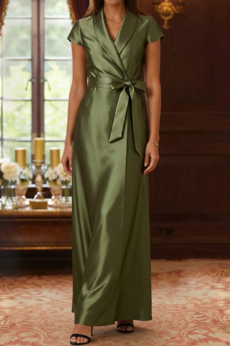V-Neck Cap-Sleeves Satin Pleated Floor-Length Mermaid Mother of the Bride Dress - Olive est en rupture de stock et sera envoyé dès qu'il sera disponible