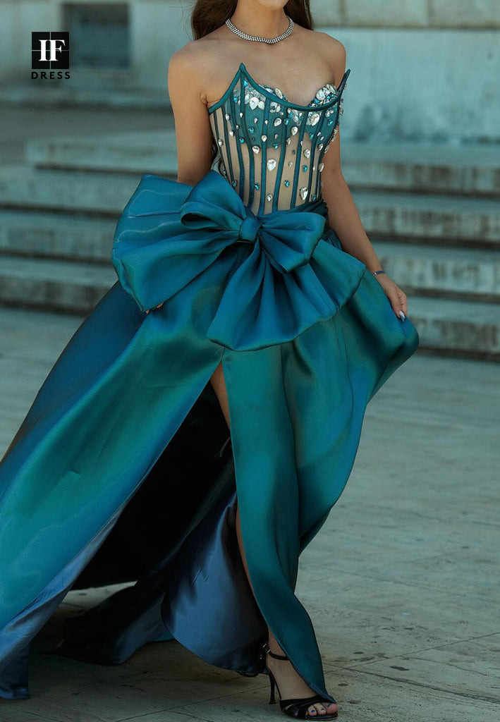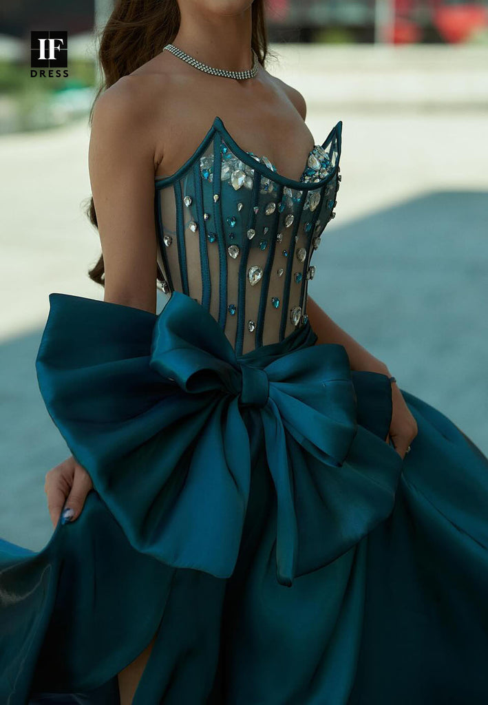Scoop-Neck Sleeveless A-Line Evening Dress Off-Shoulder Rhinestone Pleated Satin Formal Gowns - Peacock est en rupture de stock et sera envoyé dès qu'il sera disponible