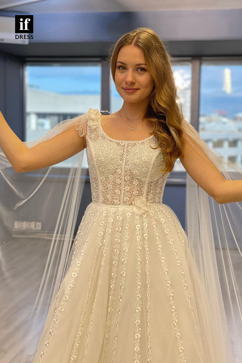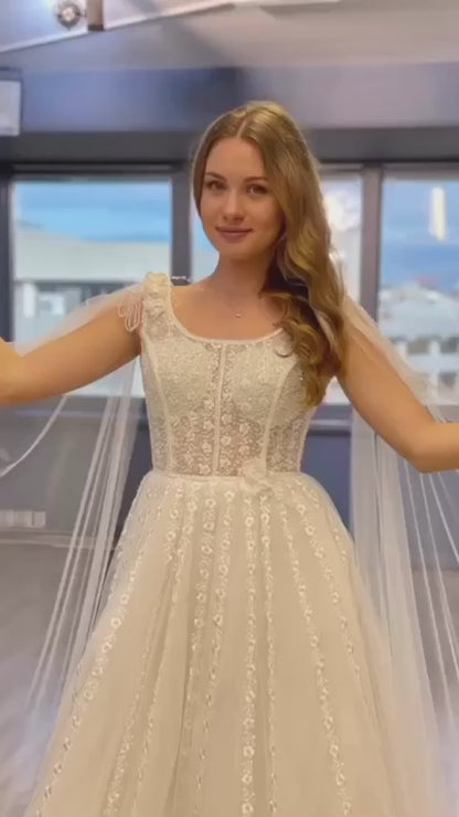 31722 - A-Line Double Straps Scoop Tulle Boho Wedding Dress