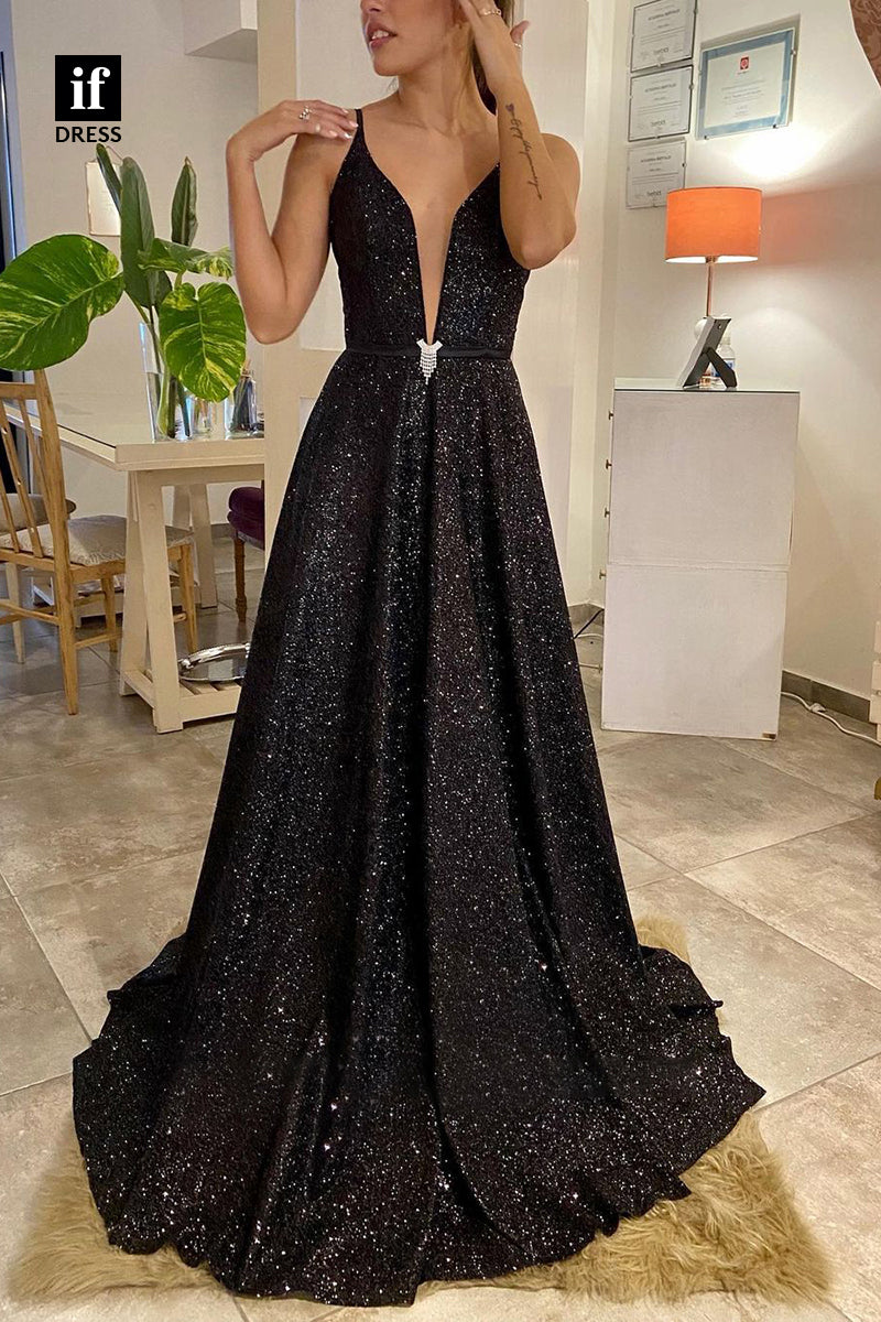 33887 - Classic V-Neck Spafhetti Straps Sparkly Prom Formal Dress - As Pic is backordered and will ship as soon as it is back in stock.