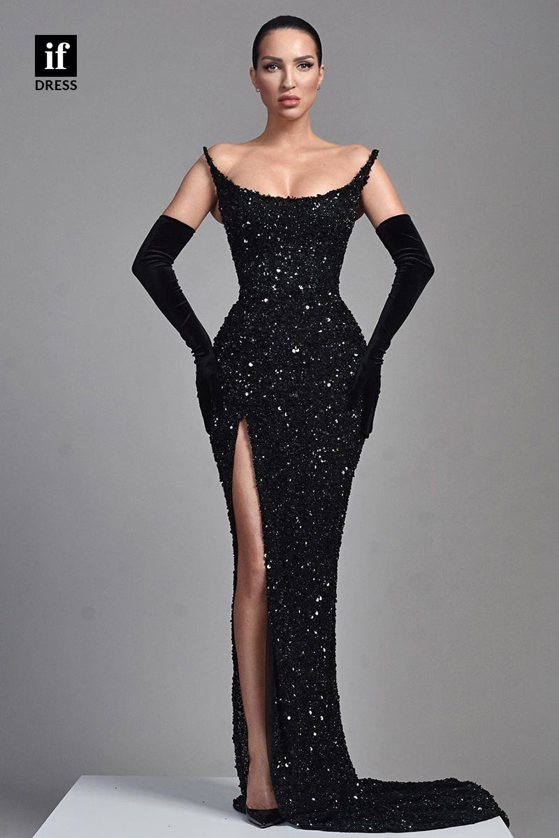 34132 - Sexy Scoop Sequins Side Split Prom Formal Dress