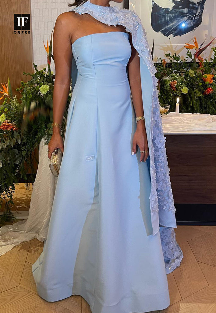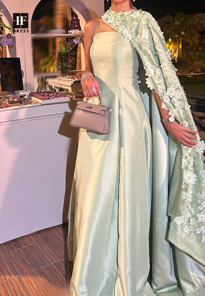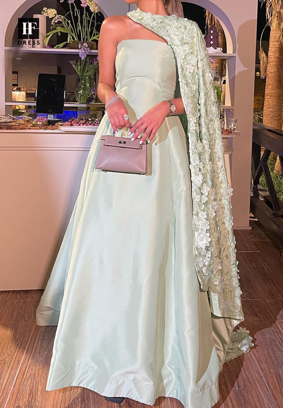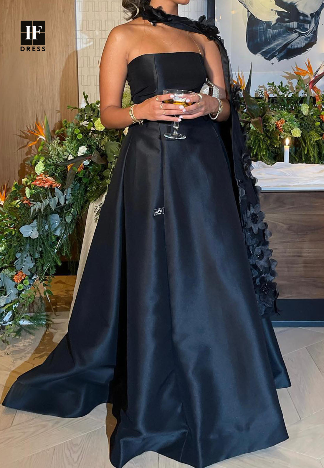 Command attention in this exquisite floor-length evening dress that seamlessly blends modern minimalism with ornate detailing. The sleek tube top creates a clean, contemporary silhouette while the luxurious satin fabric drapes elegantly to the floor. Layered over the smooth base is an enchanting floral embellished overlay that adds dimension and visual interest without overwhelming the design. The A-line cut provides a universally flattering shape that moves gracefully with every step. Perfect for black-tie events, formal galas, and prestigious celebrations, this gown offers sophisticated elegance with a touch of artistic flair—ideal for those seeking a refined yet distinctive look.