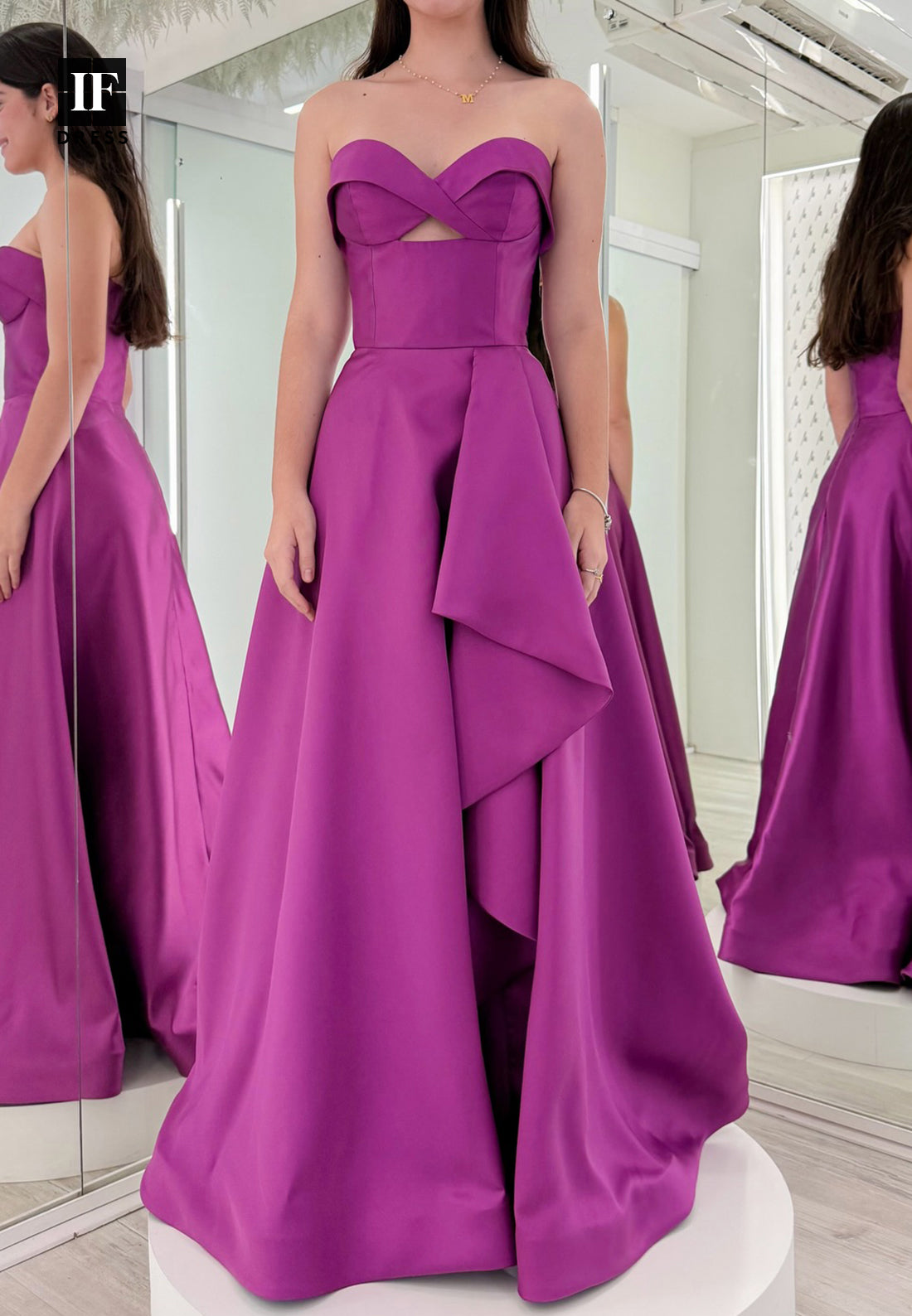 Sweeetheart Sleeveless Ruffled Satin Pleated Floor-Length A-Line Prom Dress with High Slit - Purple está em espera e será enviado assim que estiver de volta em estoque