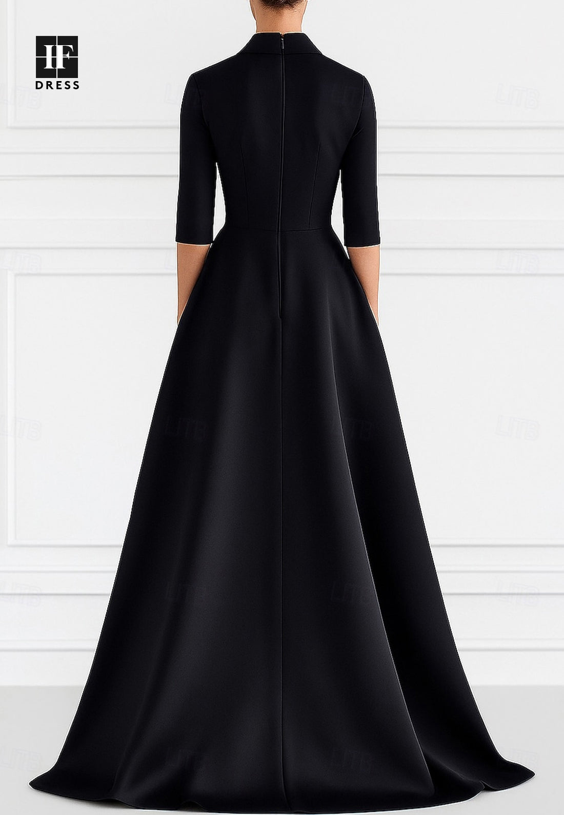 Collared Half-Sleeves Floor-Length Sequined Applique Satin High Slit Mother of the Bride Dress - Black está em espera e será enviado assim que estiver de volta em estoque