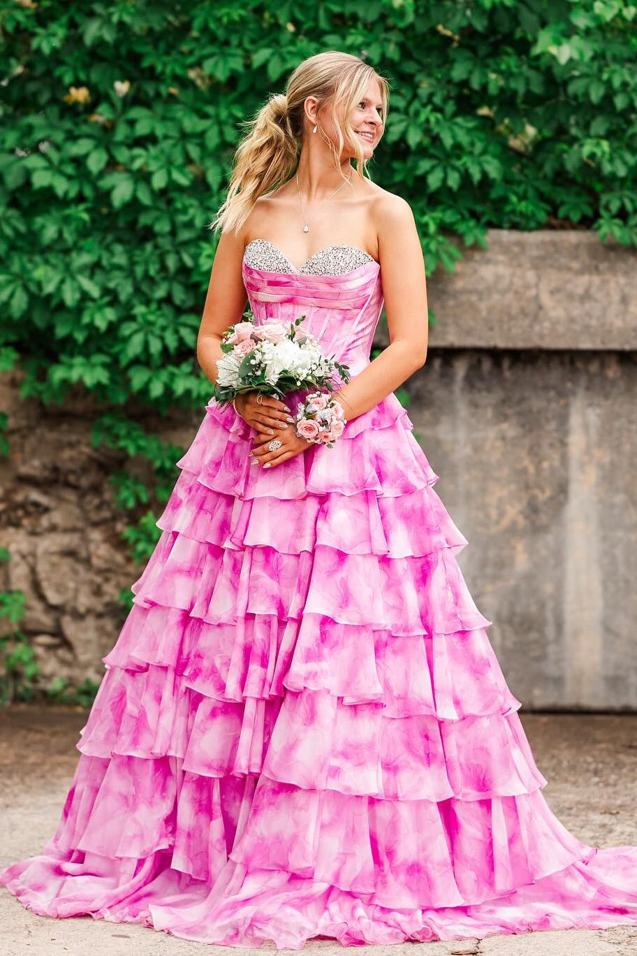 Make a stunning entrance in this sophisticated prom dress featuring an elegant off-shoulder sweetheart neckline that frames the shoulders beautifully. The sleeveless design showcases intricate beading paired with a charming print on luxurious chiffon fabric. Expertly crafted pleats and tiered layers create dimension and movement, while the classic A-line silhouette flatters every figure. Perfect for prom night, formal events, or special occasions where you want to radiate confidence and grace.