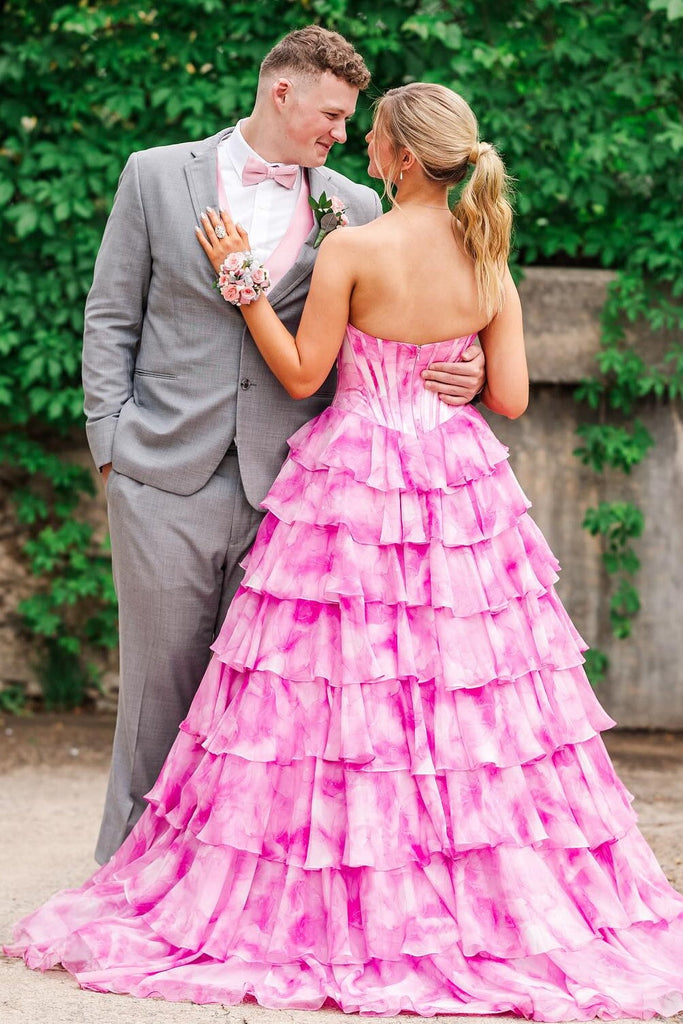 Off-Shoulder Sweetheart Sleeveless Beaded Print-Chiffon Pleated Tiered A-Line Prom Dress - Pink está em espera e será enviado assim que estiver de volta em estoque