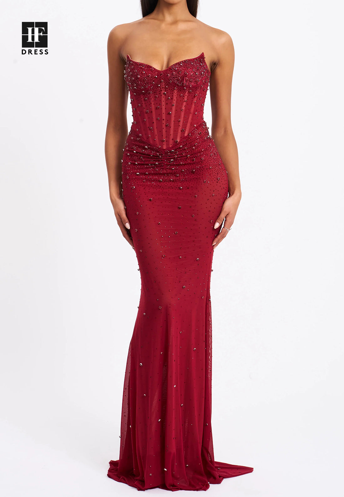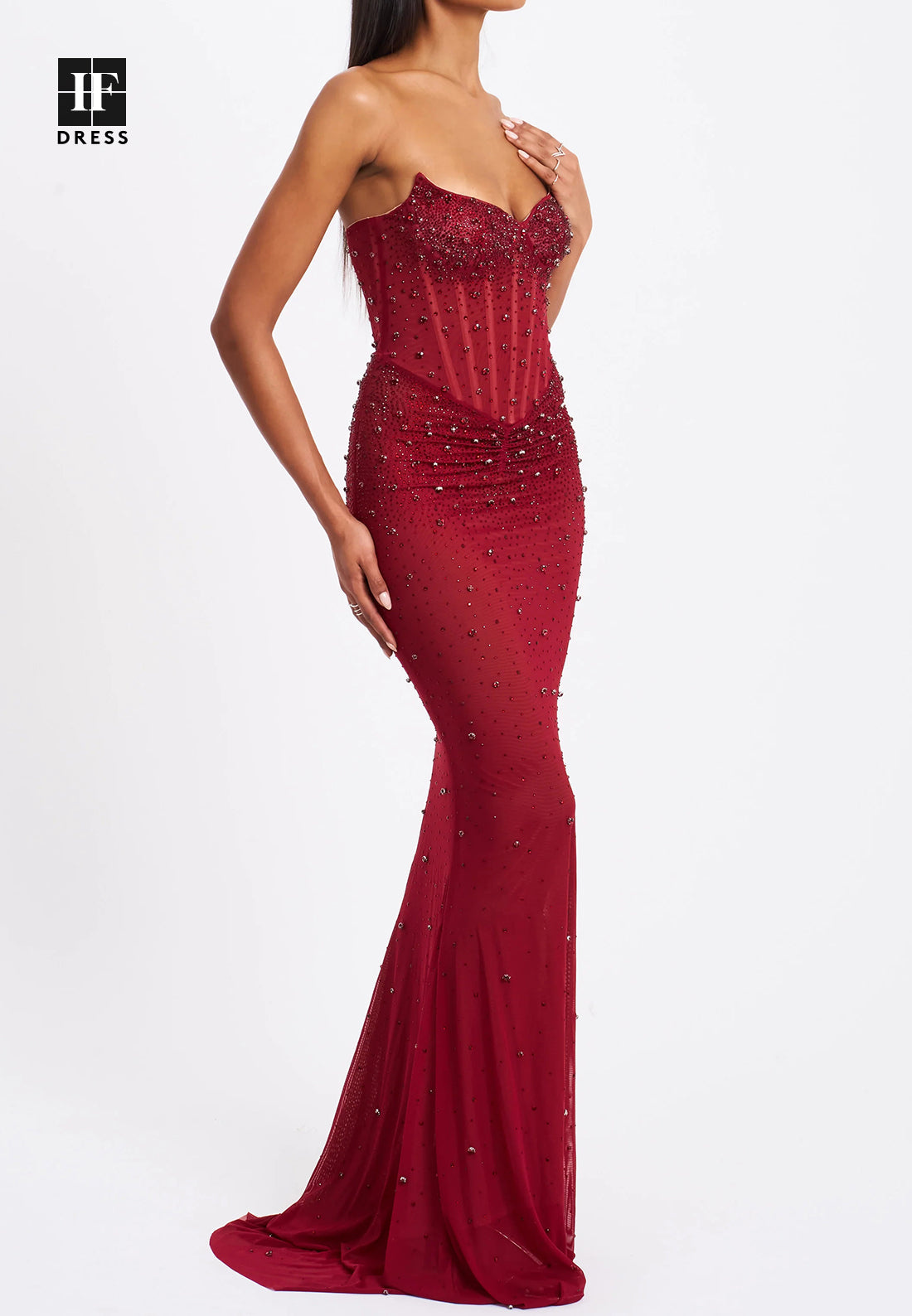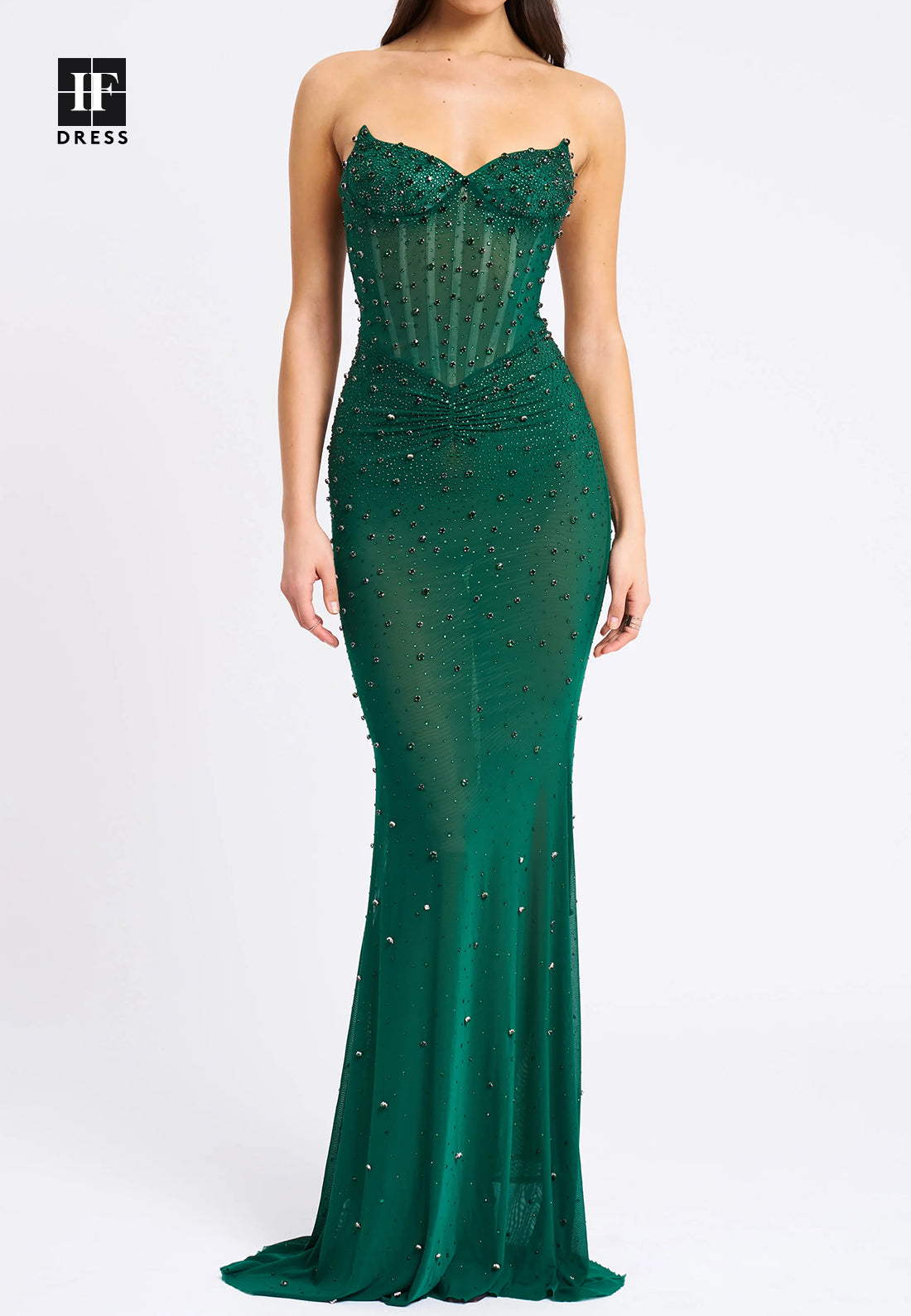 Make a stunning entrance in this elegant mermaid prom dress designed to captivate. The sweetheart neckline frames your shoulders beautifully, while intricate rhinestone and bead embellishments catch the light with every movement. Luxurious tulle fabric flows gracefully to the floor, enhanced by delicate pleating that adds dimension and sophistication. The fitted mermaid silhouette flatters your curves before elegantly flaring at the hem, creating a dramatic and memorable look. Perfect for prom, formal galas, or any special occasion where you want to feel absolutely radiant and confident.