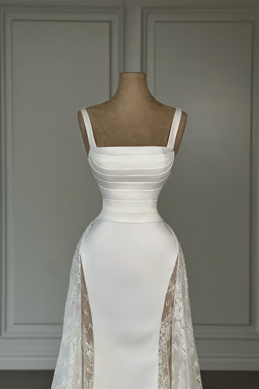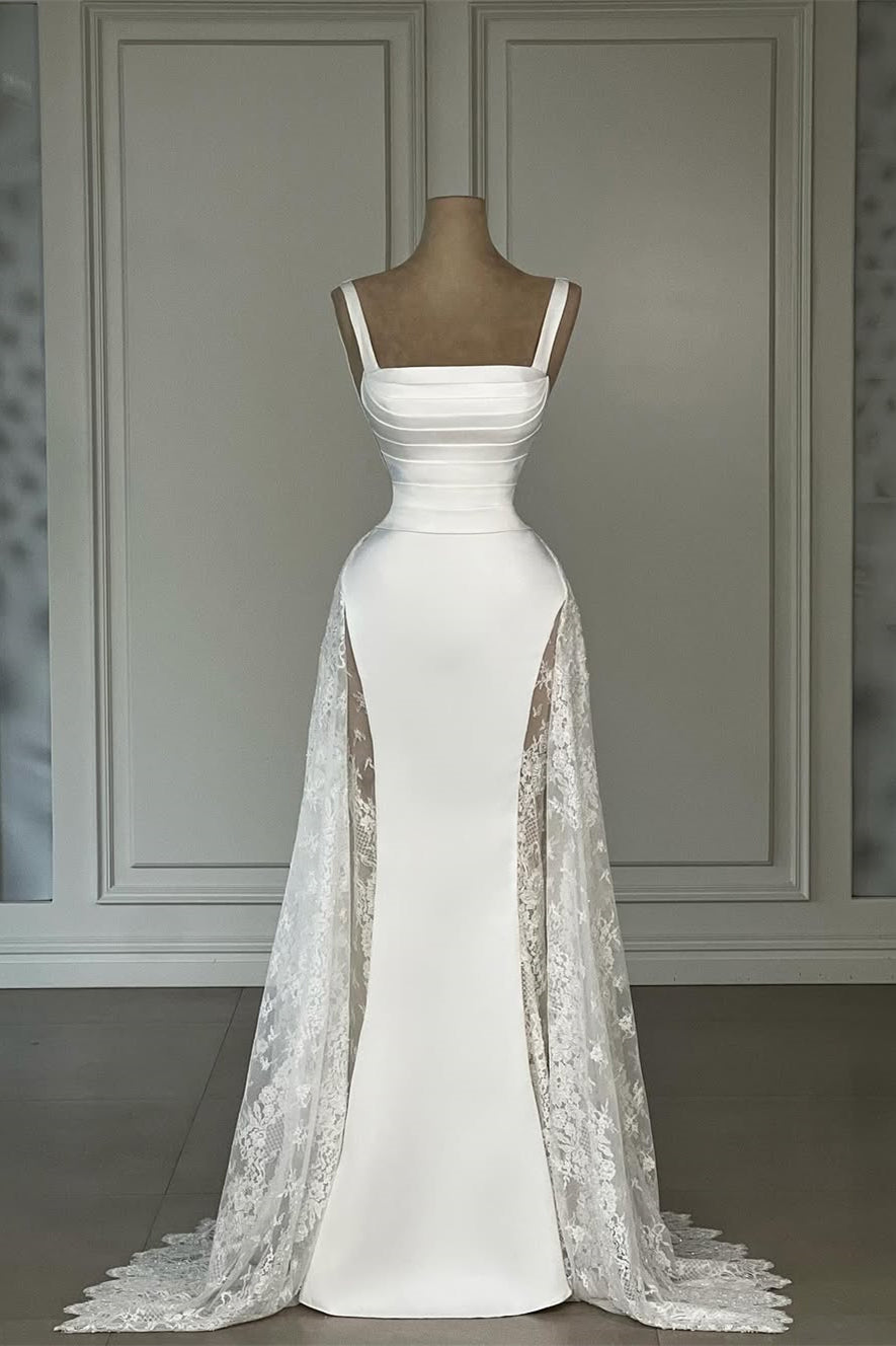 Tube Top Spaghetti Straps Sleeveless Lace&Satin Pleated Train Mermaid Wedding Dress