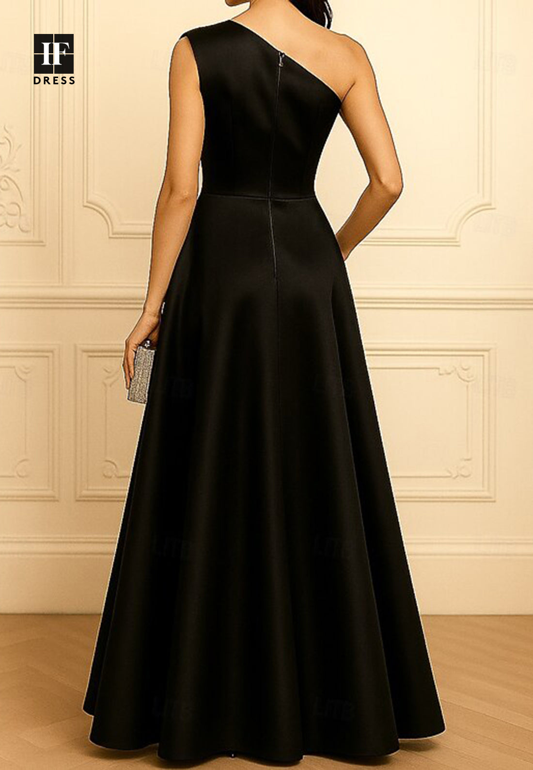 Make a sophisticated statement in this contemporary evening dress that showcases modern design sensibility. The asymmetrical neckline paired with a single elegant strap creates visual intrigue and refined asymmetry, while sleeveless styling emphasizes graceful shoulders. Sumptuous satin provides a luxurious foundation, expertly crafted with romantic ruffled detailing that adds movement and dimension throughout. The A-line silhouette flows beautifully from the bodice, offering both flattering proportions and comfortable wear. Floor-length construction delivers formal presence and timeless appeal. Perfect for upscale galas, formal celebrations, or special occasions, this dress balances contemporary flair with enduring elegance.