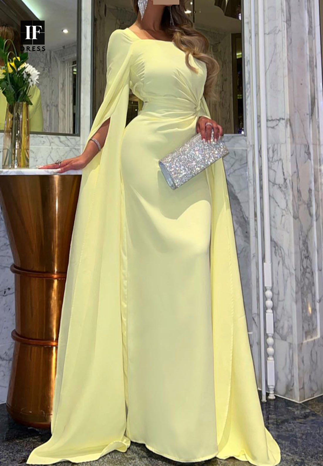 Square-Neck Cape-Sleeves Mermaid Evening Dress Floor-Length Pleated Chiffon Formal Gowns