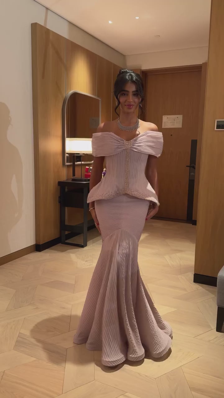 Radiate glamour in this stunning off-shoulder sweetheart evening dress, meticulously crafted for those seeking sophisticated allure. The sweetheart neckline combines with an off-shoulder design, creating an enchanting silhouette that celebrates elegance. Flowing chiffon fabric is enhanced by strategic pleating and comprehensive sequin and bead embellishment, delivering luminous sparkle with every movement. The trumpet mermaid cut provides a flattering silhouette that hugs gracefully before flaring at the hem, while a tasteful slit adds modern sophistication and ease of movement. Perfect for formal galas, evening celebrations, and prestigious events, this gown masterfully balances romantic femininity with contemporary glamour for an unforgettable occasion.